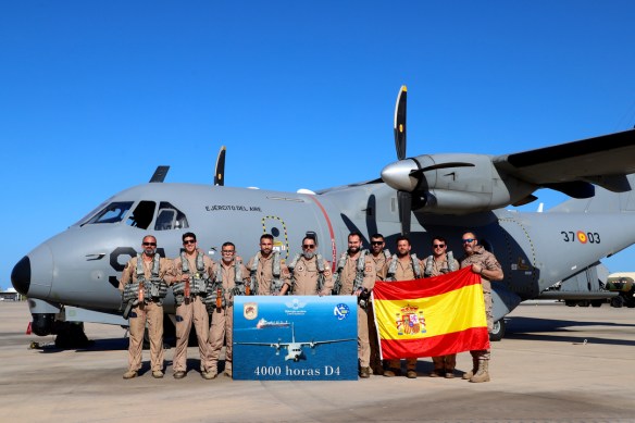 En la imagen durante la celebración de las 4.000 horas del CN-235. en la Operación Atalanta. Se observa otro de los D.4 desplegados en este caso el D.4-03. (Imagen: EMAD)