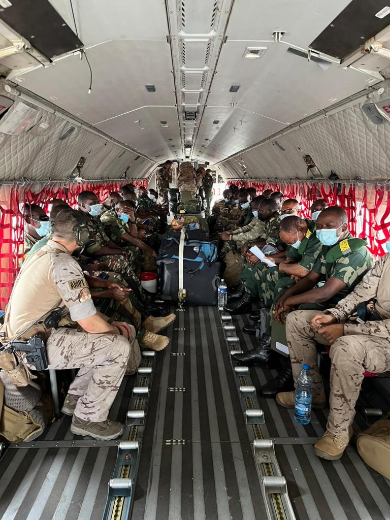 Traslado de personal militar extranjero dentro del teatro de operaciones establecido al Destacamento Marfil. Interior de uno de los C-295 destacados. (Imagen:@EMADmde)