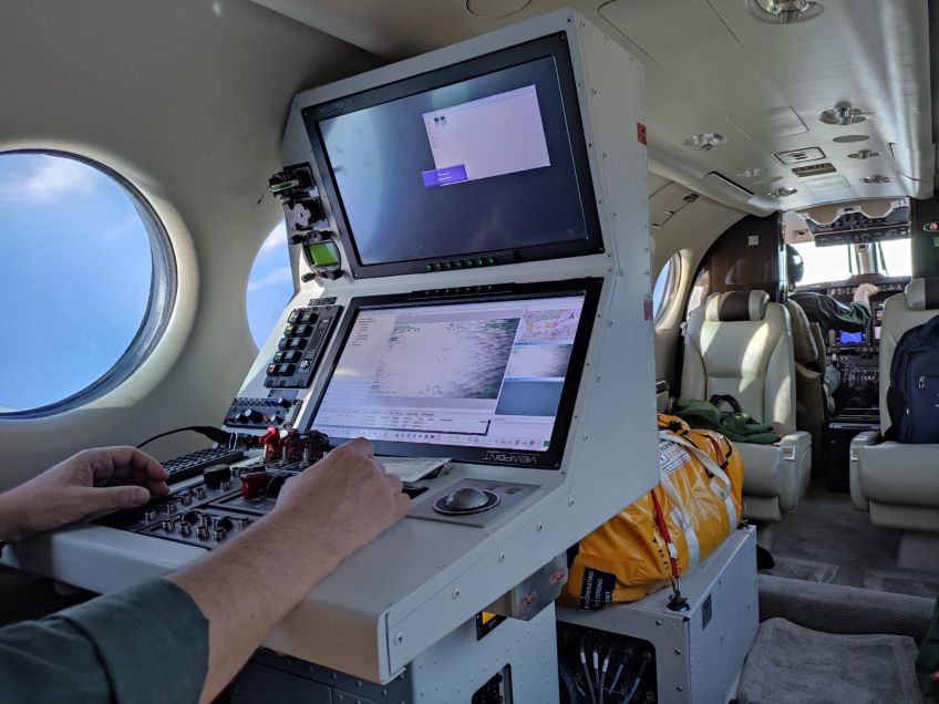 Interior del B-350i donde se puede observar la consola desde donde el Operador de Sistemas controla los diferentes sistemas optronicos del aparato. (Imagen: @FondosUEseg)