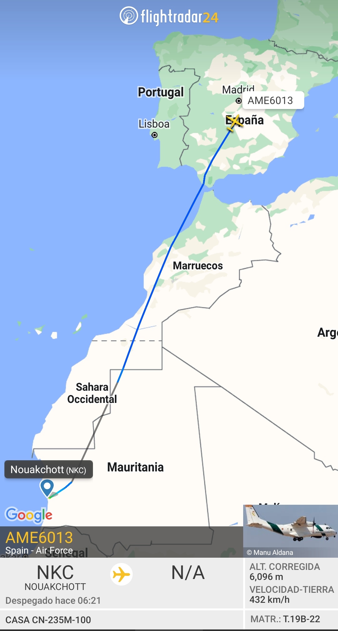 wp-1671833394455 Publicado el 23/12/2022 a 1080 × 2014 en wp-1671833394455 Con callsing AME6013 el CN-235 regresaba a Torrejón en un vuelo directo desde Nouakchott (Mauritania). Imagen: @flightradar24 Descubre más desde AERONAVES MILITARES ESPAÑOLAS Suscríbete y recibe las últimas entradas en tu correo electrónico. Escribe tu correo electrónico… Suscribirse Comparte esto:Entrada Compartir en WhatsApp (Se abre en una ventana nueva) WhatsApp Enviar por correo electrónico un enlace a un amigo (Se abre en una ventana nueva) Correo electrónico Imprimir (Se abre en una ventana nueva) Imprimir Me gusta Cargando...