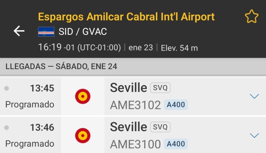 Salida de Sevilla a el 24 de enero de 2026 Publicado el 23/01/2026 a 1080 × 624 en Salida de Sevilla a el 24 de enero de 2026 Salida de Sevilla a el 24 de enero de 2026 Descubre más desde AERONAVES MILITARES ESPAÑOLAS Suscríbete y recibe las últimas entradas en tu correo electrónico. Escribe tu correo electrónico… Suscribirse Comparte esto:Entrada Compartir en WhatsApp (Se abre en una ventana nueva) WhatsApp Enviar un enlace a un amigo por correo electrónico (Se abre en una ventana nueva) Correo electrónico Imprimir (Se abre en una ventana nueva) Imprimir Me gusta Cargando...